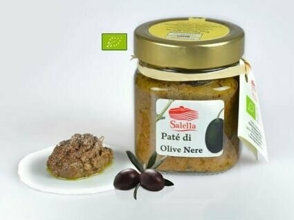 Olive nere, olio biologico extravergine d'oliva, aceto, sale. Conservare in luogo fresco lontano da fonti di calore. Conservare in frigo dopo l'apertura.